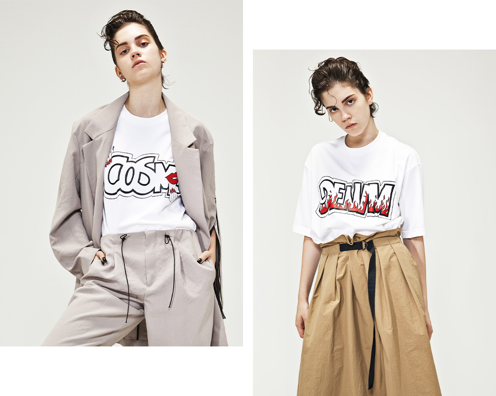 “ALLEGE”是以衣櫥裡總是存在的標準道具為基礎,追求生活中日常穿著的可能性。新的白色襯衫采用了具有獨特失落感和光澤感的“里約瑟爾”為基礎素材。在高雅的布料上特意加上塗鴉般的塗飾,是一張積極的照片。