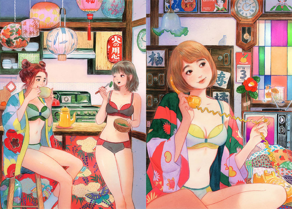 une nana cool|以新色胸罩為印象的和風格的插圖雜貨們